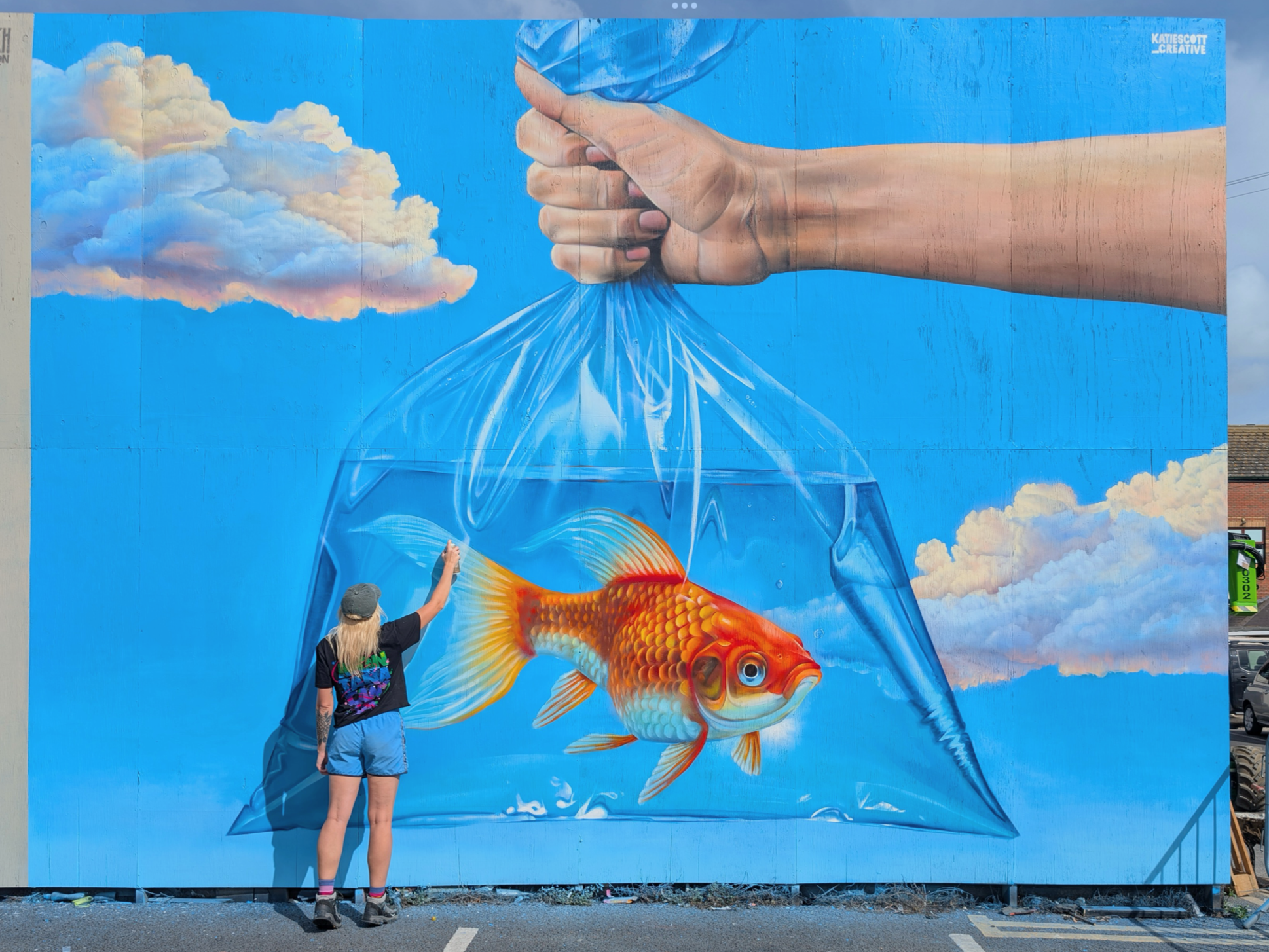 Large scale murals for private commissions and community projects, workshops and bespoke canvases. Currently based in Manchester, working all over the UK and Europe. Manchester street and graffiti artist Katie Scott creative